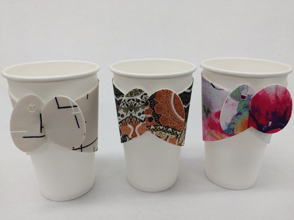 Our initial designs include Cup-Sleeves, Cup-Carrier Bags, and Wine Bags made from quality fabrics.